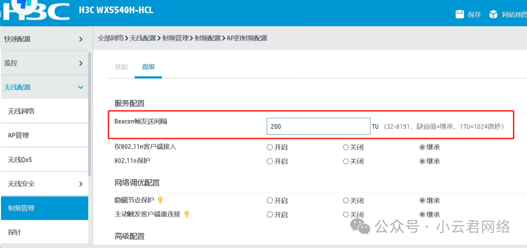 通过上述分析我们知道:SSID开的太多(beacon帧种类多)会占用信道,Beacon帧发送速率快也会占用信道。所以我们将这2个指标修改即可: