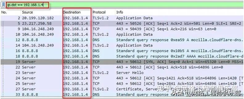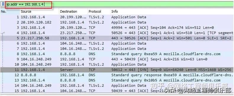 当我们想要查找属于某个发送者的所有数据包时,我们会使用下面的过滤器。