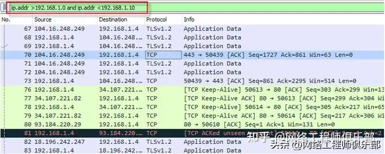 Wireshark 允许您指定网络及其子网长度。当我们想要查看进出网络的数据包时,我们需要该过滤器。