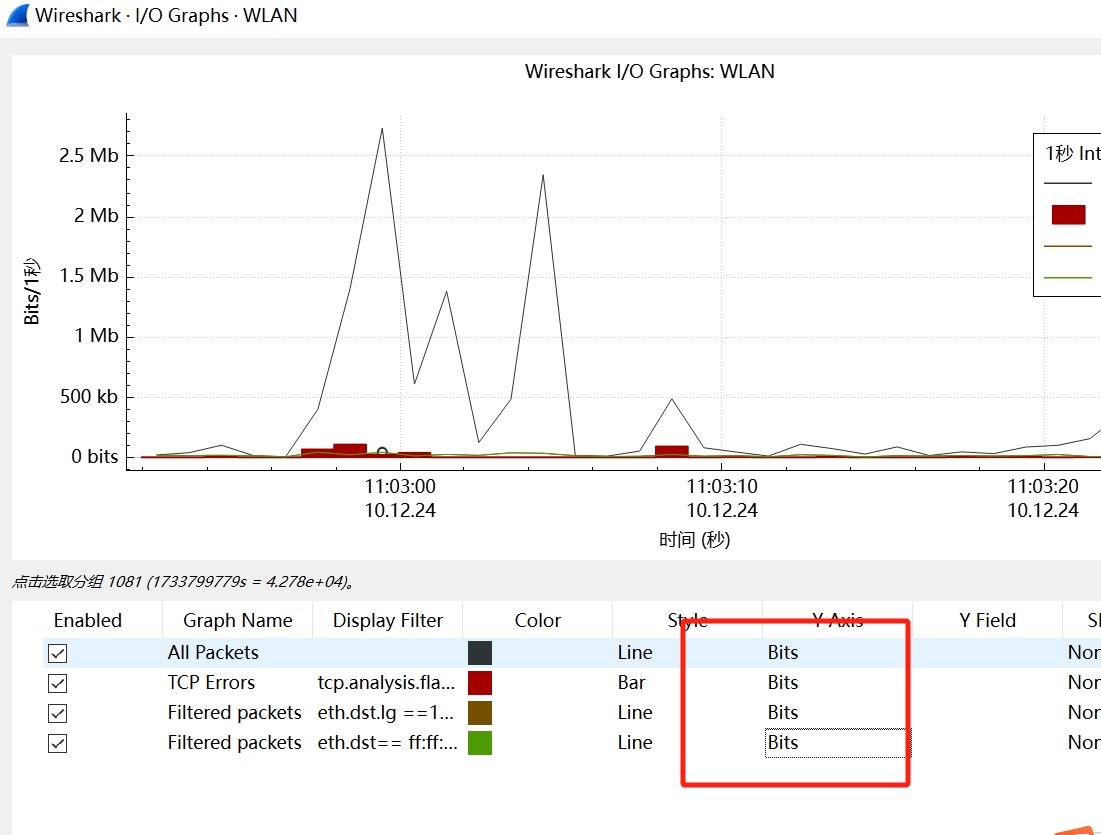 首先过滤,例如eth.addr == ff:ff:ff:ff:ff:ff ,然后点击统计-IO